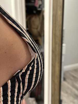 I purchased this top to go with a pair of black bottoms that I bought last year at target and they look really cute together. I love the striped design. I also like that it has a underwire since I don't have big breasts. I would say it's true to size I would definitely buy it in other colors if they had them. I also got it on sale. I think it was a target circle at 30% off I think which made it a great value.
