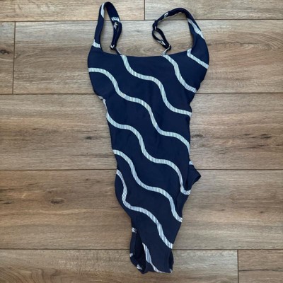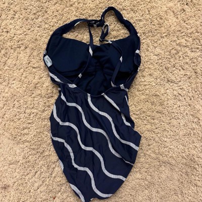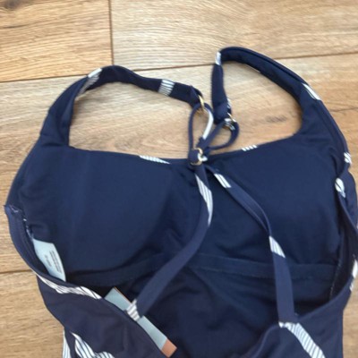 Women's Striped Cross Back Scoop Neck Full Coverage One Piece Swimsuit - Shade & Shore™ Navy Blue - 2 of 3Women's Striped Cross Back Scoop Neck Full Coverage One Piece Swimsuit - Shade & Shore™ Navy Blue - 3 of 3