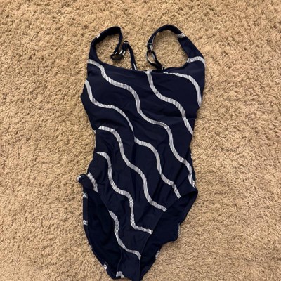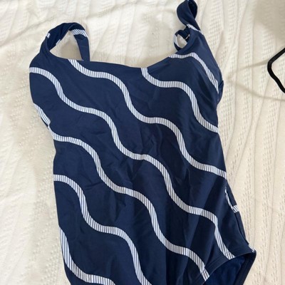 Make a statement at the beach or pool this season with this Striped Crossback Scoop-Neck One-Piece Swimsuit from Shade & Shore™. Made from nylon fabric with spandex for flexible comfort, this tricot swimsuit is adorned with wavy stripes for a classic look. It features a flattering scoop neckline with adjustable straps that make an X-design at the back and provide a personalized fit, while the removable cups offer customizable coverage.
