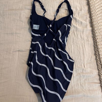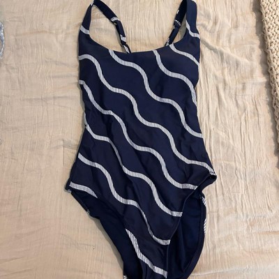 Women's Striped Cross Back Scoop Neck Full Coverage One Piece Swimsuit - Shade & Shore™ Navy Blue