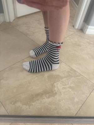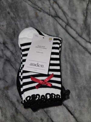 Keep your feet cozy and cute with this Women's Striped Waffle Knit 2pk Crew Socks with Bow Applique - Auden™ Ivory/Black/Red 4-10. One pair features classic stripes, while the other adds a playful bow appliqué detail. Made with a soft waffle knit and plenty of stretch, these socks are comfy for everyday wear. The ivory, black and red color combo adds a fun pop to your sock drawer.