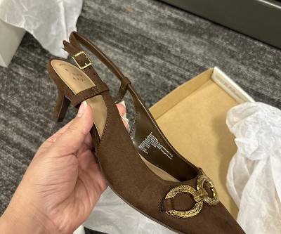 Women's Tabitha Oversized Chain Sling Back Heels with Memory Foam Insole - A New Day™ Brown 9.5: Kitten Heel, Pointed Toe
