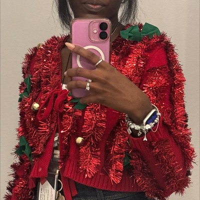 Women's Tinsel Festive Graphic Cardigan - Red - 2 of 3Women's Tinsel Festive Graphic Cardigan - Red - 3 of 3