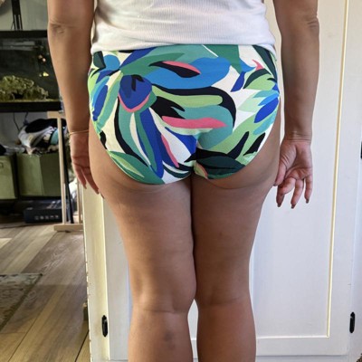 [This review was collected as part of a promotion.] The high waisted bikini bottom has such a fun design and fit great! I am 5’5” and wore a size large or twelve to fourteen and it fit me true to size. The high waist was great but there was no tummy control with it. There was great coverage on the backside which is my preference. I loved how many colors were in the design as it makes this simple to pair with any top. This was also marked as high leg, but I didn’t think it cut as high as described. I received an incentive to write this review.