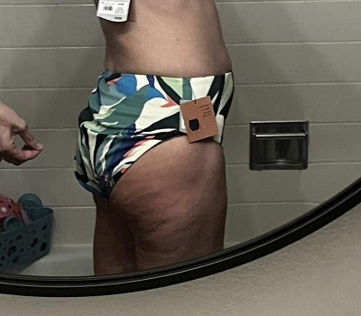 The colors in this fabric are beautiful! I’m 50 and the coverage is spot on for my comfort level.