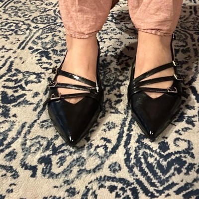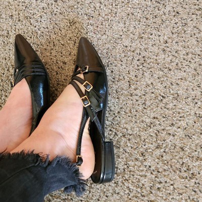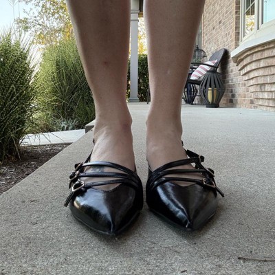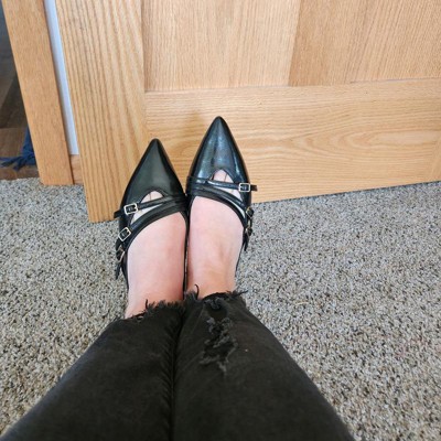 Women's Twiggy Multi Buckle Mini Heel Flats with Memory Foam Insole - A New Day™ Black 6: Pointed Toe, Faux Leather, Block Heel