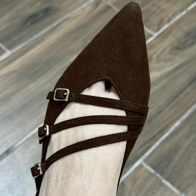 Multi buckle, mini heel flats