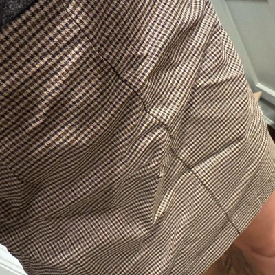 [This review was collected as part of a promotion.] I ordered this mini skirt for myself in a size 8. I’m 5 foot 7, 140 pounds, and I typically wear an 8 or medium in bottoms. I would say that the skirt fit me as it was intended to fit, but it is just too short for my liking. The brown plaid is something I associate with work wear, but this is certainly not office appropriate. The pockets are fake and there are no built in shorts. I received an incentive to write this review.