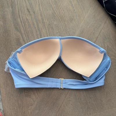 [This review was collected as part of a promotion.] This is the women’s twist front bandeau bikini top and it is fabulous. I got this in the blue and in an XS (0-2) as I am 5’2” 115 pounds and wear a 32A/B. The fit is perfect and it looks super cute. I love the boning on the sides of the chest as it holds you in. This comes with detachable shoulder straps which are great for when you are swimming or running around and want additional support. The back strap has 3 notches so you can adjust the size to fit you perfectly. The blue is beautiful and I love that this has sewn in cups.