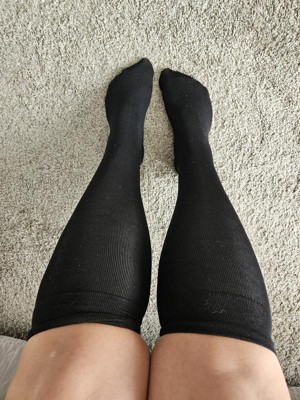 Super comfortable knee high socks! These are super soft and have a nice stretch to them. They’re snug enough to stay up on my legs but not so tight they hurt. They’re easy to get on. Soft and not too hot.