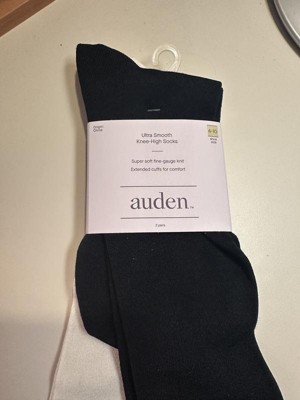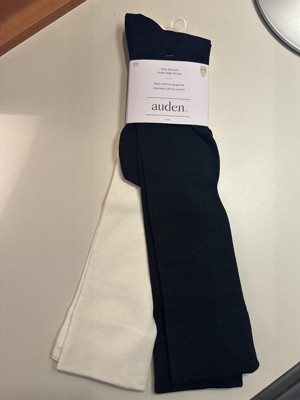 Discover comfort with the Women's Ultra Smooth Supersoft Fine Gauge Knit 2pk Knee High Socks from Auden™ Black/Ivory 4-10. Made from a blend of polyester and spandex, these socks comes in black and ivory colors providing the perfect stretch and fit. The mid-weight knit fabric ensures all-day comfort, while the non-binding cuffs keep them securely in place. Each pack includes two pairs of knee high socks, ideal for any casual outfit.
