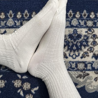 These Auden crew socks are so nice. The fabric feels lovely. It’s soft & lightweight. They fabric stretches, yet holds their shape. I like the subtle cable texture on them. It adds a feminine touch. The variety of colors is in this pack is handy to coordinate with different outfits. They’re not bulky, so I can wear them in warm weather without my feet getting too hot. I like to wear these sneakers and dress shoes too. I can wear them pulled up, folded over, & scrunched up, depending on the style I’m going for. They are good quality.