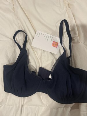 [This review was collected as part of a promotion.] I ordered this bra for myself. I ordered my true size 38B and it fit true to size. I was pleasantly surprised by this bra, I don’t typically go for unlined bras but this one is nice! It is extremely comfortable and you really don’t need all the extra padding. This bra is perfect for the summer and every day wear, as it is super light and breathable. I love the subtle design and the navy color is really cute. I received an incentive to write this review.