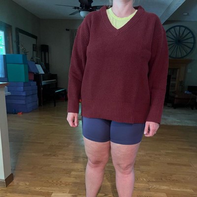 [This review was collected as part of a promotion.] I am wearing a size extra extra large in this maroon colored sweater by Ava and Viv. I am normally between a large and an extra large that still fit me well being a little bit oversized. This is a V-neck Sweater and was very soft material. This hit below my butt, which was great could pair with pair with leggings and tall boots super cute outfit for the winter and the office. I received an incentive to write this review.