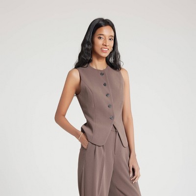 This Women's V-Neck Suit Vest - A New Day™ brings polished style with an easygoing feel. Designed with a tailored fit, it pairs effortlessly with your favorite trousers, jeans or skirts. The sleeveless cut and button front keep things classic while giving you room to layer. Whether you're heading to the office or grabbing coffee, this vest is an easy pick for pulled-together looks.