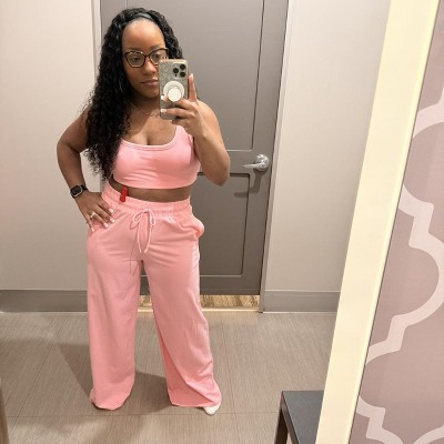 I bought the set in purple, and I wanted to love it but the pants are so long! I’m. 5’5 got a medium and they were just so big and awkward.