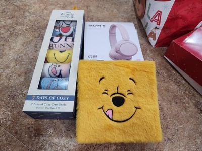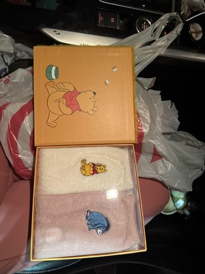 Stock up your drawer with a hint of fun with the Women's Winnie The Pooh Furry Face Box of Cozy Embroidered Crew Socks - Ivory/Pink. This 2-pack of lightweight knit crew socks features two Winnie The Pooh-themed embroidery, perfect for adding sweetness to every outfit. Crafted for comfort and style, each pair offers soft, breathable fabric that keeps feet cozy all the time. Whether for lounging or sleeping in, these socks bring excitement to your everyday wardrobe.