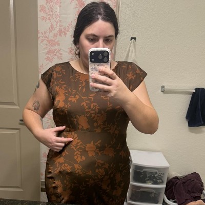 [This review was collected as part of a promotion.] I’m really loving this brown floral dress and think it is a perfect dress for the Thanksgiving holiday. It’s a nice soft silk type material, but I like that it is not too thin. This is a size XL, which is my normal size, and it fits just as I would expect. I paired it with a stretch belt to define my waist a little more but it really does not need this accessory if you prefer a clean line. I received an incentive to write this review.