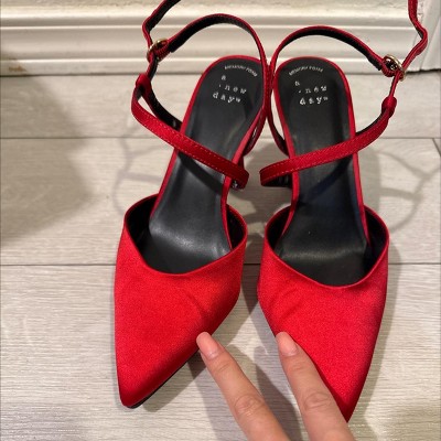 Look sharp and confident in these Rosemary Heels from A New Day™. These medium-width heels feature a satin vamp with a closed pointed toe for a polished look. Designed with a memory foam insole for extra support and comfort, these heels come with a 3-inch stiletto heel for an elevated look. Plus, the ankle strap with buckle closure provides an adjustable, stay-put fit.