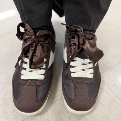 I love these tennis shoes! They're so comfy and cute! I love the satin ribbons mixed with the shoestrings. They're stylish and I've been wearing them all fall and they go with everything!