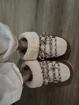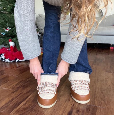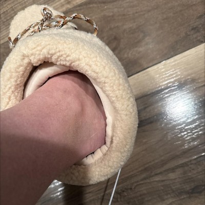 [This review was collected as part of a promotion.] I was hoping for these to be a really cozy pair of thick boots but honestly - these are a total flop for me. The boots feel so much like moon boots, they are very light and have plastic bottoms which where I live with winter - these are a hazard on snow and ice. While they look like they would be soft and cozy, the inside is not actually soft at all. Sadly these just aren’t a win for me in any way.
