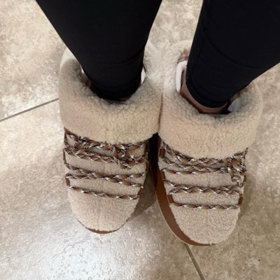 [This review was collected as part of a promotion.] These chunky fuzzy winter, slides or slippers add about 2 inches of height at least. I’m wearing a size 7 my normal size and it fits true to size. The colors are really nice on this perfect for fall and winter weather. Would look nice with jeans or brown shades of color. I think others will like this I recommend it