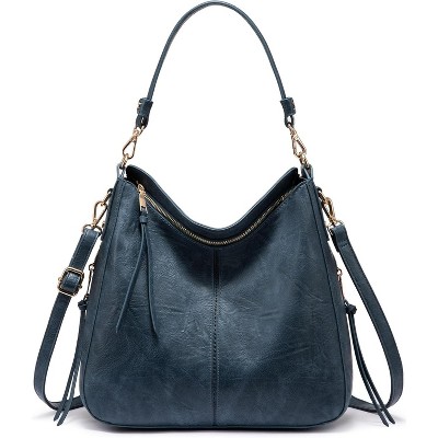 Women Canvas Hobo Purse Multi Pocket Tote Shopper Shoulder Bag Casual Top Handle handbag Be06dark Blue 11.8 x 13.3 x 4.7