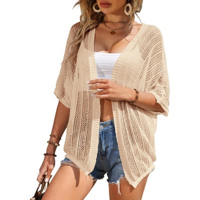 Women Crochet Cardigan Shrug Lightweight Thin Short Sleeve Casual Open Front Cardigan