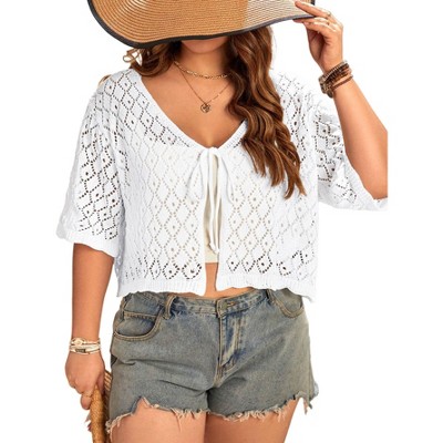 • Women Crochet Sweater Lightweight Cropped Summer Tops