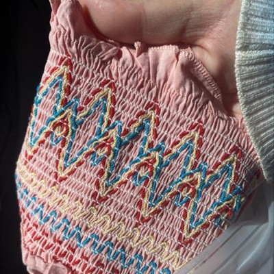 Not as pictured. The colors on the embroidery are red, blue, and beige, NOT rainbow as it shows in the photo. (I zoomed in to check before ordering. I would’ve kept the dress had the colors not looked so unattractive together on the light pink. Had to return.