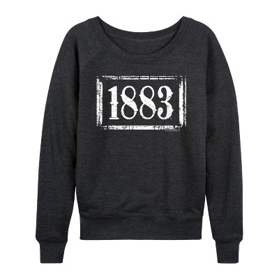 Women's 1883 1883 Wood Sign Lightweight French Terry Wide Neck Long Sleeve Graphic Shirt - Heather Charcoal - 1X