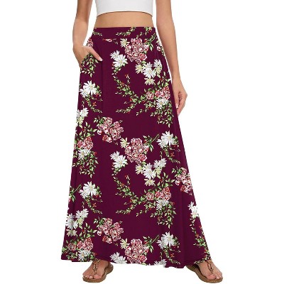 - TRANSITIONAL - Great for year round wear; pair with a cami and sandals for the summer feels, and with a pullover and boots for a winter skirt. The red printed maxi skirt makes a great transitional piece for spring and autumn.
