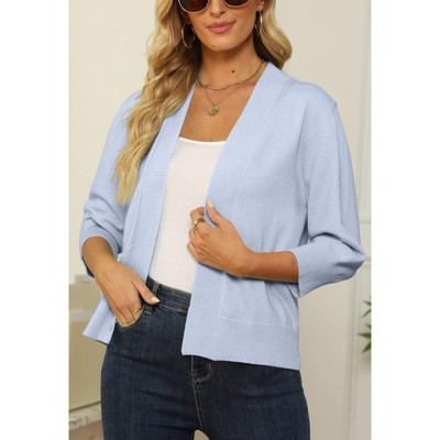 - Cardigan sweaters for women will make you look cute and feel good for the season! Womens cardigan features 3/75 sleeves, open front, cropped design, ribbed hem and sleeves. Layer this lightweight cardigan in cool mornings, air-conditioned office or breezy evenings. What a charming look!