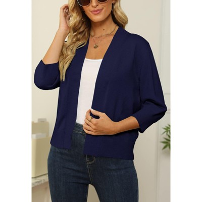 Women's 3/4 Sleeve Open Front Cropped Cardigan Sweater Elegant Shrugs for Women light blue_M