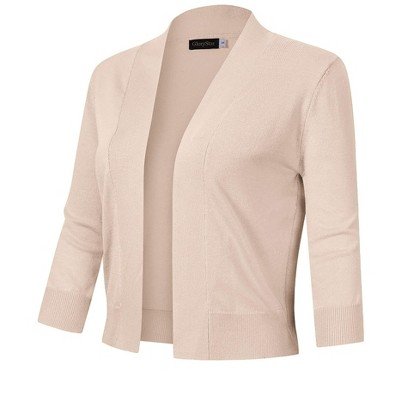 Women's 3/4 Sleeve Open Front Cropped Cardigan Sweater Lightweight Knit Short Shrugs Camel 4XL