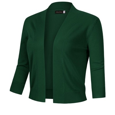 Women's 3/4 Sleeve Open Front Cropped Cardigan Sweater Lightweight Knit Short Shrugs Dark Green XL