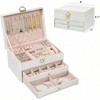 Women's 3 - Layer PU Leather Jewelry Box with 2 Drawers, White