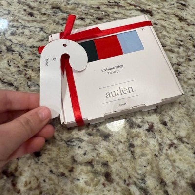 Update your intimates drawer with the festive style of this 3-Pack Laser-Cut Holiday Thong Underwear from Auden™. This low-rise thong set is made of nylon-spandex blend knit fabric for a flexible fit that moves with you, while the cotton lining and gusset provide extra coverage for confident wear. Designed with an invisible edge, these low-rise thong underwear come in assorted colors and holiday prints for three different fun and stylish options.