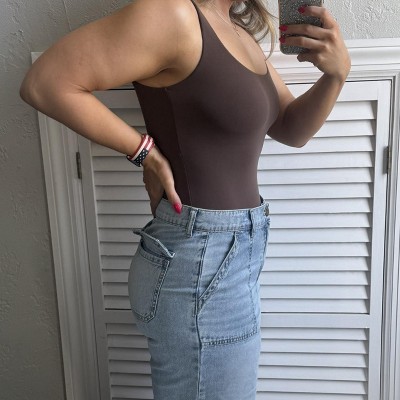This bodysuit is the most comfortable item in my closet. I got the black and it’s super flattering. I’ve got a medium bra size (34 c) and can get away with only wearing nipple covers, no bra which is amazing. It can be dressed up or down and goes with pretty much anything. Please make more colors!