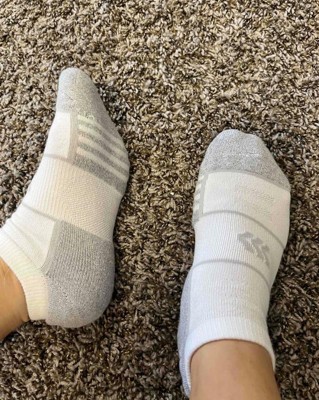 Six + one bonus pair pack of athletic socks made from a moisture-wicking, midweight fabric blend with ventilating mesh helps keep your feet cool, comfy and dry. Arch support, reinforced heel and toe, Y-heel stitching and zone cushioning round out the comfortable fit. Plus, the no-show style makes them easy to wear with a variety of shoes.