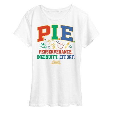 Abbott Elementary - Collegiate - Women's Short Sleeve Graphic T-Shirt - Celebrate the essence of Warner Bros.'s Abbott Elementary with officially licensed apparel featuring unique designs crafted exclusively by Hybrid Apparel. Each piece brings beloved characters, iconic imagery, and memorable moments to life, offering Abbott Elementary fans a one-of-a-kind way to showcase their passion.