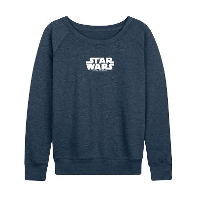 Women's Abbott Elementary Logo Lightweight French Terry Wide Neck Long Sleeve Graphic Shirt - Heather Indigo - Medium