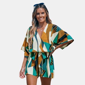 Women's Abstract Geo Dolman Straight Leg Romper - Cupshe - 1 of 4
