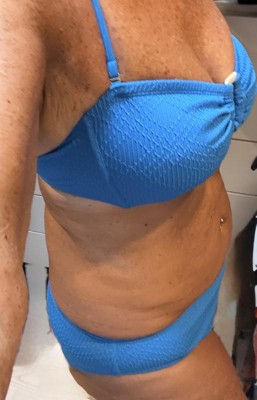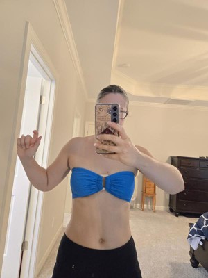This blue bandeau is perfect for summer! The vibrant shade complements my skin tone beautifully, and I love the center accent detail. The convertible design lets you wear it strapless or as a halter, which makes it super versatile for different occasions. Comfortable fit that works for both lounging and active pool days!