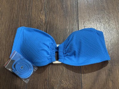 The Shade & Shore™ Women's Ottoman Ribbed Bandeau Bikini Top in BLUE is a beautifully colored top. I would recommend this top for anyone cup size C or smaller. Unfortunately I am much larger and this top just won't cut it. It does come with a set of straps, but again if you are a busty gal it still doesn't cut it. Beautiful otherwise.