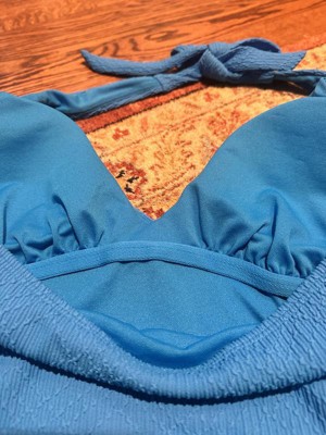 I love the color and the style of this swimsuit, but the belt isn't adjustable and ended up drooping down. The halter top tie helps the top half fit really well, combined with the subtle texture throughout the swimsuit. The bottom front felt like it was a little bigger and saggier than usual. I like the top half of this suit, but the bottom half including the belt just didn't fit right on me.