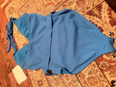 Brighten up your swim looks with the Abstract Print Ottoman Ribbed Plunge High-Leg Medium Coverage One-Piece Swimsuit from Shade & Shore™. This blue swimsuit features an abstract print ottoman ribbed pattern for a gorgeous look. It's made with recycled polyester-spandex fabric with elastic at the leg openings and four-way stretch to give you flexibility and comfort in and out of the water. Featuring a halter-neck design, it also has removable padding for customizable coverage.