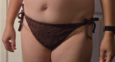 These are my favorite bottoms! Love the side tie to adjust as needed. They are so flattering. The brown color is my favorite part, they are a true chocolate brown color. The lace detail is fun and cute. These bottoms are so soft and comfortable.