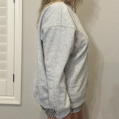 [This review was collected as part of a promotion.] I ordered this sweatshirt for myself and a size small, which is equivalent to a four or six. At 140lbs, I typically wear either a small or medium in tops and decided to go with the small because this is supposed to be an oversized item. My first impression of the sweatshirt is that it is really cute, nice and simple. The sweatshirt is incredibly soft on the inside and outside and is stylish with leggings. I think the small was the perfect size, because I wouldn’t want it to be any bigger on me. I received an incentive to write this review.