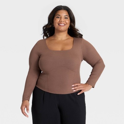 Women's Alluring Knit Top with Plunging Lace Detail - Cupshe-XL-Brown